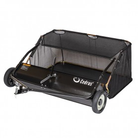 Zbieracz Cedrus to uniwersalne urządzenie które współpracuje z różnego rodzaju traktorkami ogrodowymi. Ciągnięte za maszyną, za pomocą obrotowego wałka napędzanego od kół, zbiera i wyrzuca skoszoną trawę lub liście. Urządzenie posiada uchylny kosz dzięki czemu obsługa jest łatwa i wygodna. Poprzez pociągnięcie linki opróżniamy kosz bez opuszczania siedziska traktorka.